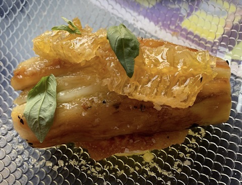 Persönliches Highlight war übrigens die Aubergine mit Ziegenkäse und Honigwabe.