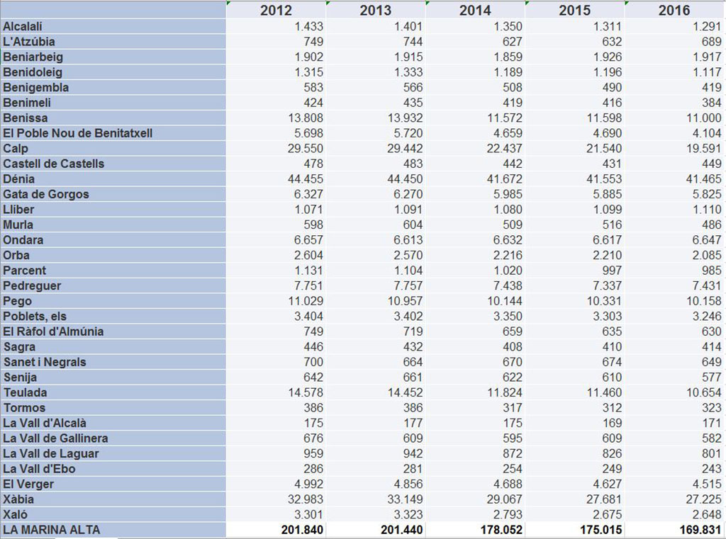 Mit Spannung werden allenthalben die Abschlussstatistiken für das zuende gehende Jahr 2016 erwartet, das in der Marina Alta mit einer offiziellen Bevölkerungszahl von 170.000 begonnen hatte, die dem Niveau vor 2005 entsprach.