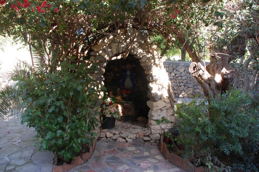 In einem Regal hinter den Esstischen stehen jede Menge beschrifteter Zahnbürsten in Reih und Glied, Erinnerung für die Kinder, sich nach jedem Essen die Zähne zu putzen. Vom Comedor aus gelangen wir in den großen Patio. Am Wegesrand befindet sich eine Felsengrotte mit Heiligenbild, gegenüber der große, zweistöckige Anbau - alles macht einen äußerst gepflegten Eindruck. Hinter der Naya sind Außenküche, Barbacoa, Wäscherei, Hausaufgabenzimmer und Aufenthaltsräume der Kinder untergebracht.