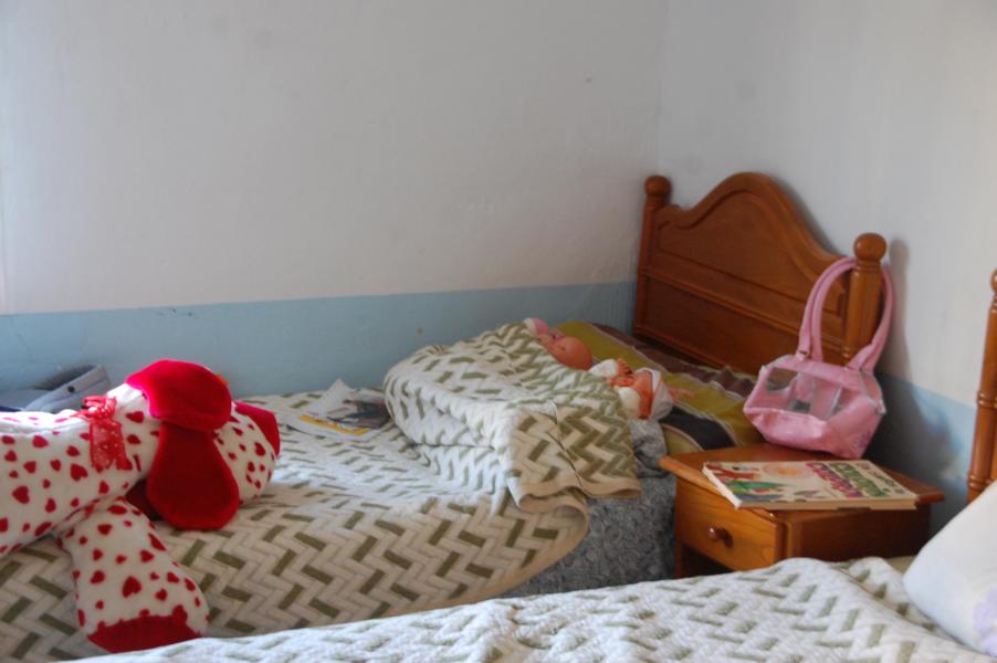 Über eine Außentreppe des Neubaus gelangen wir in die ersten Etage, wo sich Zimmer an Zimmer reiht. Hier sind die Jungen in Doppelzimmern untergebracht. Alle Räume sind klein und zweckmäßig, jeweils mit zwei Betten, Schränken, Tischchen und Stühlen eingerichtet. Neben diesen Doppelzimmern gibt es auch Mehrbettzimmer, in denen Geschwisterkinder untergebracht sind, sie werden nicht auseinander gerissen. Montse erzählt uns von einem deutschen Paar, das auf der Straße lebt und deren fünf Kinder in der Einrichtung untergebracht sind bzw. waren... Doch dazu später noch einmal.
