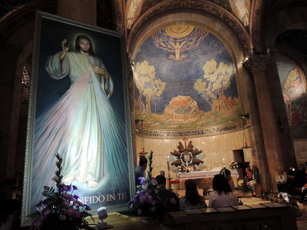 Der Altar steht vor dem Felsen, auf dem Jesus gebetet haben soll, und ist mit einem Gitter umgeben, das an die Dornenkrone erinnert.