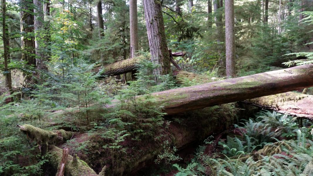 Kurz vor Alberni befindet sich der "Catherdal Grove", ein kleiner Park mit bis zu 800 Jahre alten Douglasien, wenn auch nicht mehr sehr viele dieser alten Giganten, bis zu 71 Meter hoch und bis zu 9 Meter im Umfang, stehen, denn ein Brand vor über 300 Jahren hat viele davon vernichtet. Beeindruckend ist dieser kleine Wald dennoch. Von hier ging es weiter bis Alberni.