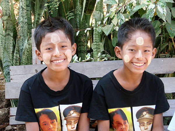Hätten diese Beiden solche T-Shirts 2 Jahre vorher getragen, hatten sie noch mit viel Ärger rechnen müssen, denn da waren Aung San Suu Kyi und ihr Vater noch ein rotes Tuch für die Obrigkeit.