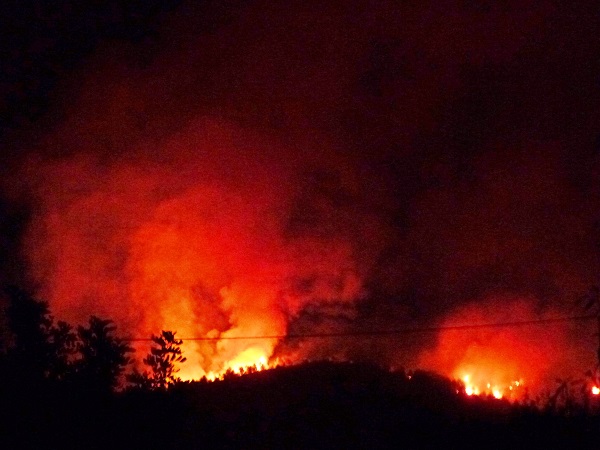 Als wir gestern Abend gegen 22 Uhr von einem Besuch heimkamen, brannte der Hang hinter Lliber mal wieder lichterloh