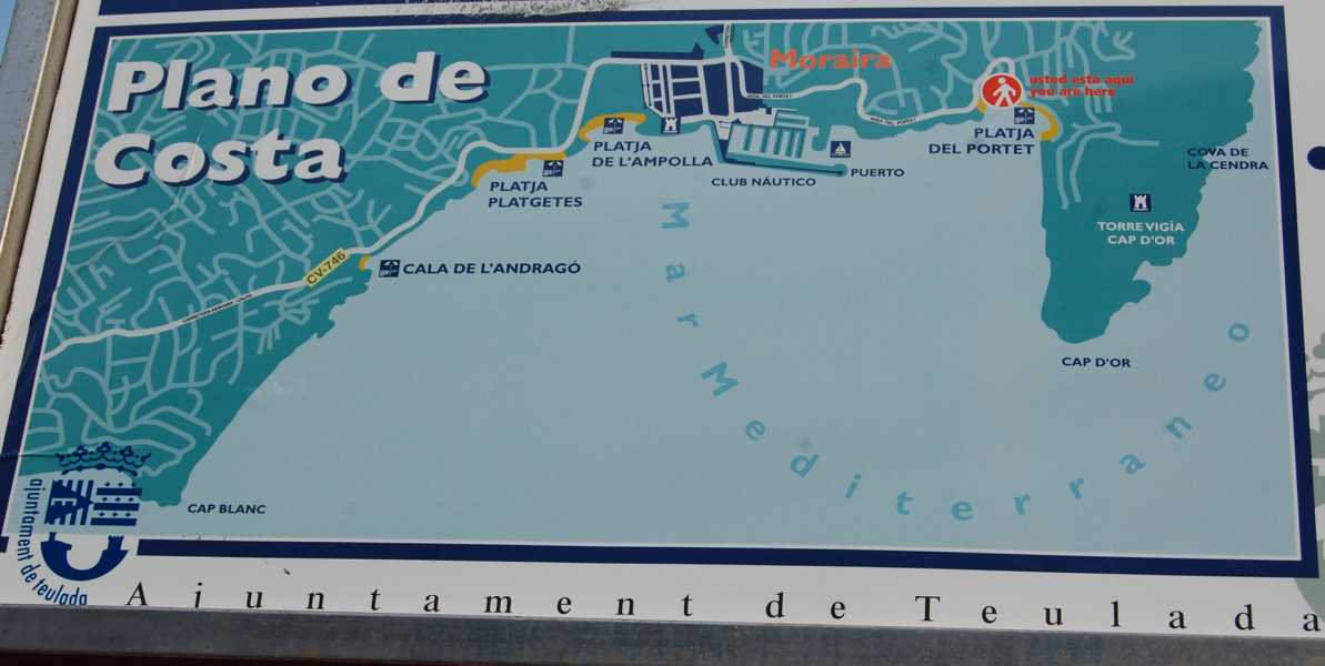 Die Doppelgemeinde Teulada-Moraira liegt zwischen Jávea und Calpe. Die Muttergemeinde, Teulada, liegt im Landesinnern, Moraira 6 km davon entfernt an der Küste.