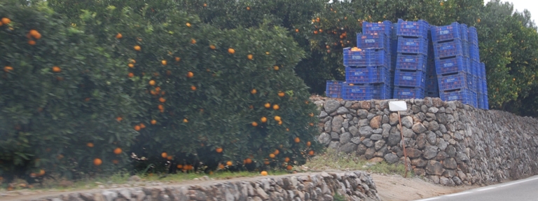 Wer sich im Land Valencia mal genau die Orangenplantagen anschaut, erkennt die verlassenen Plantagen an dem heruntergefallenen Obst unter den Bäumen, oder an den verdorrten Bäumen, wenn die Plantagen schon länger nicht mehr bewirtschaftet worden sind.