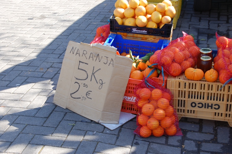 2009 kostete 1 kg spanischer Orangen an einem Stand (also zum Aussuchen) in einer Stadt in Deutschland 0,99 € und waren nach 2000 km Transportweg teilweise billiger als hier vor Ort.