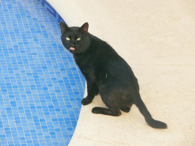 Gestern habe ich eine winzige Eidechse aus dem Pool gerettet, sie trieb schon tief unter der Oberfläche im Wasser.