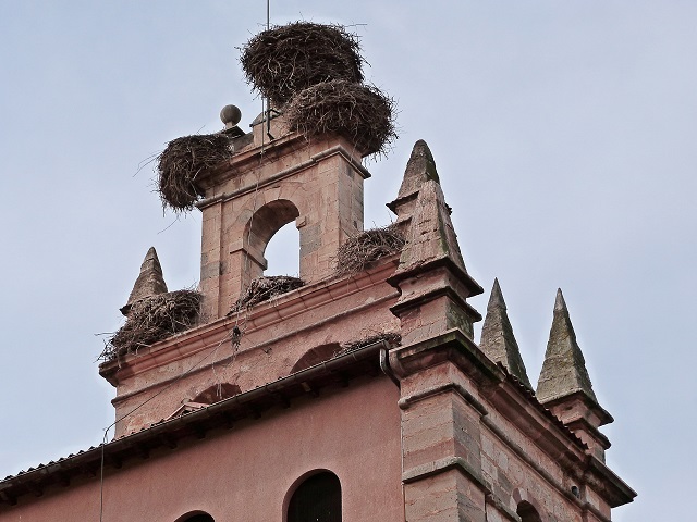 Wie überall in der Gegend - zu dieser Jahreszeit verlassene Storchennester auf den Türmen.