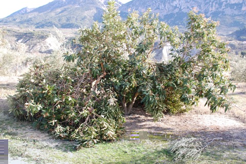 Die immergrüne Japanische Wollmispel mit ihren kräftigen dunkelgrünen Blättern, die an der Unterseite behaart sind, kann bis 10 m hoch werden. Sie ist in ganz Südostasien verbreitet , kommt aber eigentlich aus dem Südosten Chinas, von wo sie im 18. Jahrhundert als Zierpflanze nach Europa kam. Der Baum fühlte sich im mediterranen Klima sehr wohl und so begann man ihn am Ende der sechziger, Anfang der siebziger Jahre für den Erwerbsanbau zu kultivieren. Seitdem wurden die Sorten ständig gekreuzt, wodurch eine immer bessere Qualität erzielt wurde.