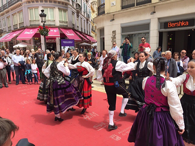 ... übrigens: grad ist Filmfestival in Malaga, deshalb liegt in der Fußgängerzone der rote Teppich aus. Als wir vorhin da waren, hat dort eine Folkloregruppe aus einer der Partnerstädte von Malaga aufgespielt und wir haben die Gelegenheit für ein neues Avatarbild auf der roten mile genutzt
