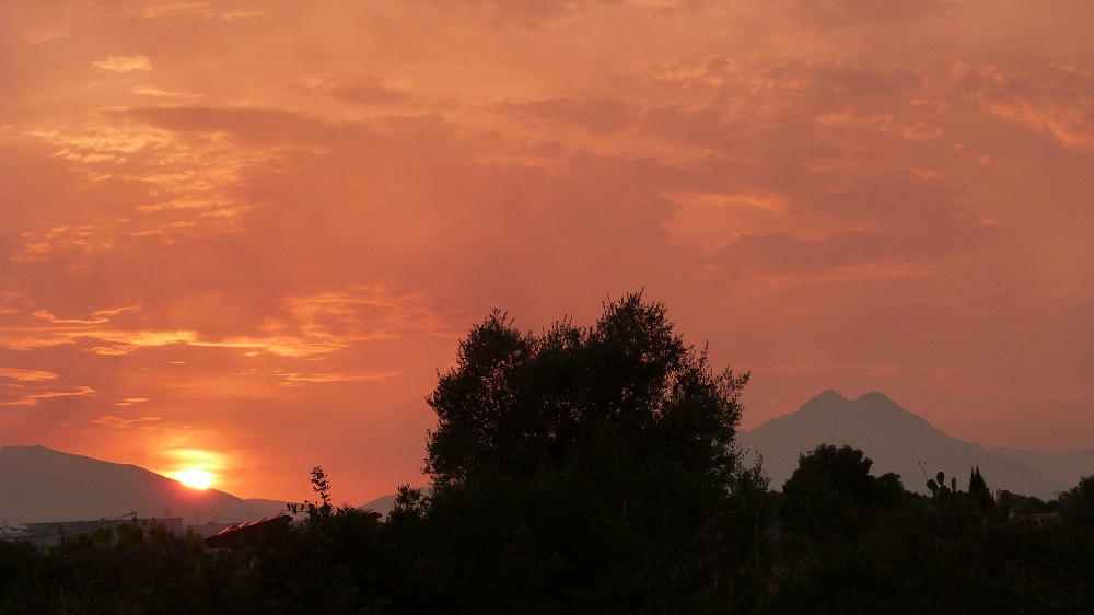 der feuerrote Himmel bei Sonnenuntergang um 20.05 Uhr