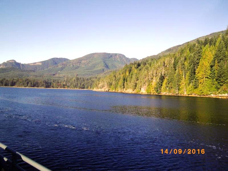 So fuhren wir erneut nach Port Alberni und buchen bei Lady Rose Services eine Reise auf dem Motorschiff Frances Barkley nach Ucluelet. Das Wetter bietet hervorragende Voraussetzungen für einen genialen Tag auf dem Barkley Sound. Nachdem wir den offenen Pazifik erreicht haben, ist am Ufer eine Lodge zu sehen. Hier kann man auch Übernachten, aber mindestens zwei Tage, da das Schiff nur jeden zweiten Tag vorbeikommt. Die Lodge ist idealer Ausgangspunkt, um mit Kayaks die kleinen Inseln und die Ufer des Pacific Rim Parks zu erkunden. Nach einer weiteren Stunde erreichen wir unser Tagesziel Ucluelet, ein ehemaliges Indianerdorf. Man hat uns ans Herz gelegt, das indianische Museum zu besuchen, aber niemand kennt ein solches Museum, auch nicht die Tourist Information. Wir haben nur gut eine Stunde Aufenthalt, und wer nicht pünktlich ist, muss eben warten bis in zwei Tagen das Schiff wiederkommt. Nach der kurzen Mittagspause treten wir die Rückreise an und sehen in einiger Entfernung zwei Grauwale die ihres Weges ziehen.