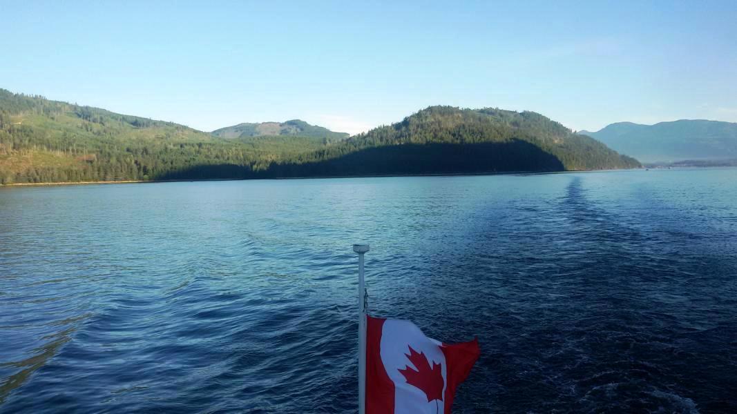 So fuhren wir erneut nach Port Alberni und buchen bei Lady Rose Services eine Reise auf dem Motorschiff Frances Barkley nach Ucluelet. Das Wetter bietet hervorragende Voraussetzungen für einen genialen Tag auf dem Barkley Sound. Nachdem wir den offenen Pazifik erreicht haben, ist am Ufer eine Lodge zu sehen. Hier kann man auch Übernachten, aber mindestens zwei Tage, da das Schiff nur jeden zweiten Tag vorbeikommt. Die Lodge ist idealer Ausgangspunkt, um mit Kayaks die kleinen Inseln und die Ufer des Pacific Rim Parks zu erkunden. Nach einer weiteren Stunde erreichen wir unser Tagesziel Ucluelet, ein ehemaliges Indianerdorf. Man hat uns ans Herz gelegt, das indianische Museum zu besuchen, aber niemand kennt ein solches Museum, auch nicht die Tourist Information. Wir haben nur gut eine Stunde Aufenthalt, und wer nicht pünktlich ist, muss eben warten bis in zwei Tagen das Schiff wiederkommt. Nach der kurzen Mittagspause treten wir die Rückreise an und sehen in einiger Entfernung zwei Grauwale die ihres Weges ziehen.