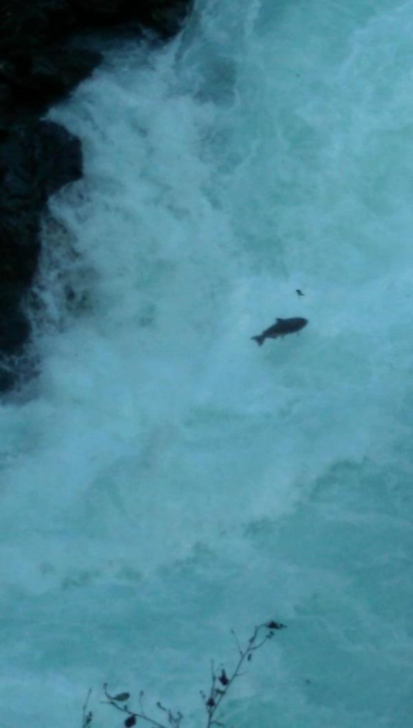 Die Lachse müssen diese Stromschnellen hinaufspringen um an ihre Laichplätze zu kommen. Leider sind sie hierbei nur sehr schwer zu fotogafieren.
