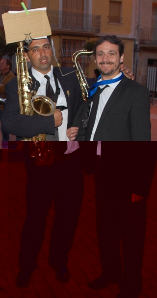 Um 19.45 Uhr begann die erste von vier Prozessionen in Cocentaina, die im Abstand von einer Viertelstunde von den einzelnen Pfarrkirchen ausgingen. Wir hatten uns für die Kirche „El Salvador“ im ehemaligen maurischen Stadtteil entschieden und hörten schon von draußen Musik erklingen. Gespannt betraten wir die Kirche. Hier erwartete uns keine feierliche, düstere Karfreitagsstimmung. Vor dem Altar sang sich noch der Chor ein, begleitet von Musikern. Es wurde gescherzt. Damen der oberen Gesellschaftsschicht mit schwarzen Mantillas stöckelten aufgeregt zwischen Sakristei und Kirchplatz hin und her, um vor der Prozession schnell noch eine Zigarette zu rauchen. Nazarenos in ihren gelben Gewändern hatten ihr Kapuzen noch nicht aufgesetzt, denn darunter ist es stickig warm. Vor der Kirchenpforte telefonierten schnell noch einige Teilnehmer ihre fehlende Kameraden zusammen, die dann tatsächlich kurz vor 20 Uhr aus allen Himmelsrichtungen im Laufschritt vor der Kirche eintrafen.