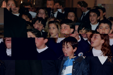 Auf dem Kirchplatz stand schon das Gestell für den schweren Thron, den Paso, bereit. Die Kinder kamen als erste aus der Kirche, Jungen zogen Mädchen an den Röcken und bekamen dafür so manchen Puffer zurück. Doch da kam er schon - der schwer Paso, geschultert von etlichen Männern, die ihn mit vor Anstrengung roten Köpfen zu dem Gestell trugen. Dort hatte die Schlepperei ein Ende, denn das Gestell hatte Rollen, die unter dem herabhängenden Stoff verborgen waren. Noch einmal tief Luft geholt, denn jetzt mussten die Nazarenos ihre Kapuzen aufsetzen und die Prozession setzte sich im Gleichschritt in Bewegung, an deren Schluss der Geistliche ging.Wir wechselten zur Parroquía Santa Maria, im christlichen Viertel, wo nun die Hauptprozession ihren Ausgang nehmen sollte. Aber noch war es nicht so weit, die Christusfigur in einem Glassarg stand noch in der Kirche. Der Menschenauflauf war hier entschieden größer, mehrere Bruderschaften mit verschiedenfarbigen, bestickten Gewändern und Musikkapellen warteten vor der Kirche, jede Cofradía hatte seinen eigenen Paso. Aus einer Gasse kam ein Kinderchor. Die Kinderaugen schauten aufmerksam auf ihren Dirigenten und sangen voller Inbrunst.