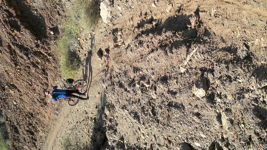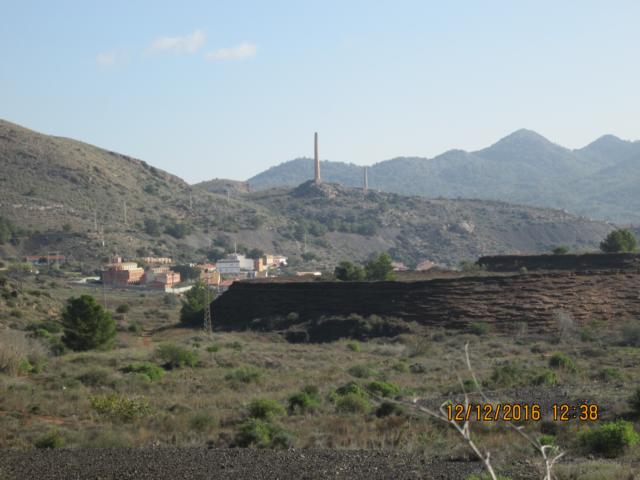Vorbei am Eingang und der Kapelle ging es dann über groben Schotter hinauf zur Passhöhemit herrlichem Ausblick auf die Bucht von Portmann. Ab hier war es eher was für Mountainbikes. In Serpentinen fuhren und schoben wir durch die vom Bergbau aufgerissene wilde Landschaft mehrfach mußten wir umdrehen, da der Weg plötzlich endete. Im Berg waren auch Baumaschinen beschäftigt. Hoffentlich sind die vor dem großen Regen fertig geworden. Unten auf der Straße dann ein letzter Blick auf das Gebirge, das von uns bezwungen wurde. Ab hier ging es über die Gebirgsstraße nach El Gorguel, die Chemiefabriken und der Ölhafen von Escombreras Richtung Cartagena.