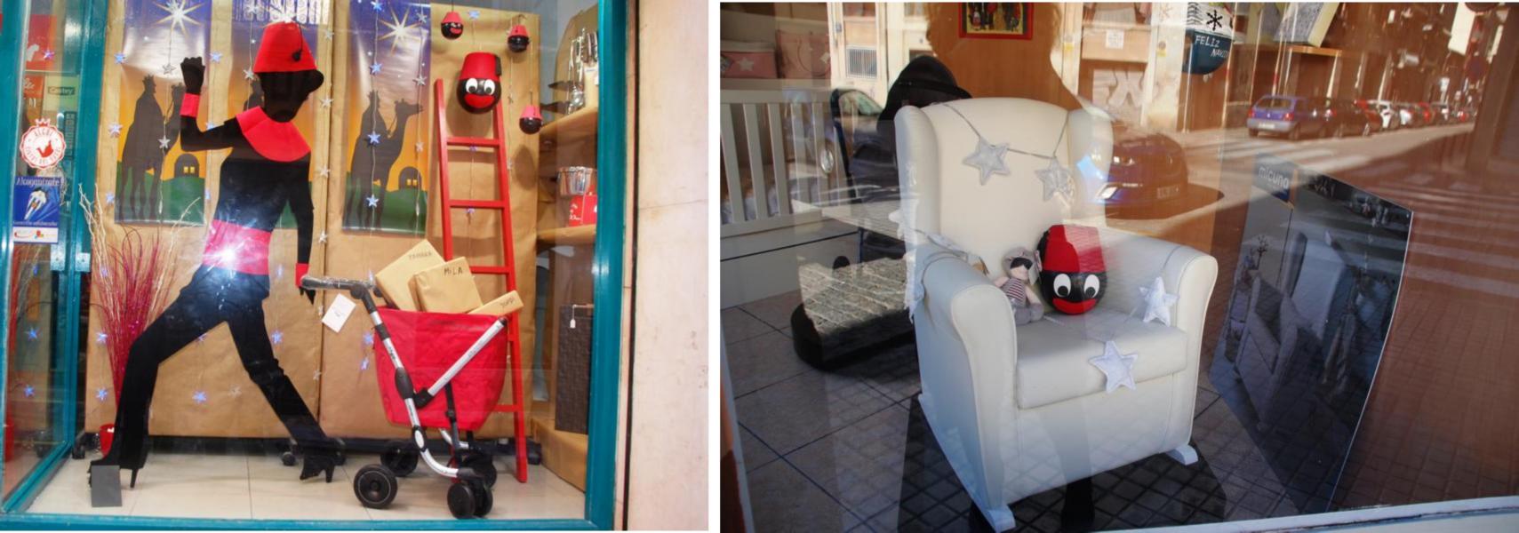 Doch bei den Umzügen in Alcoi gibt es eine weitere Besonderheit, die wohl einmalig ist: Die Reyes werden von schwarz gekleideten Pagen (pajes) mit schwarz geschminkten Gesichtern und breiten roten Lippen begleitet, die mit großen Holzleitern zu den Balkonen der anliegenden Wohnhäuser hochsteigen, um die bestellten Geschenke auszuliefern.