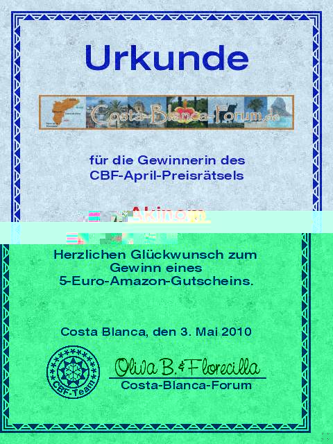 Ich will Florecilla nicht vorgreifen, aber der Gewinner des Gutschein für den Monat April steht sicher fest!