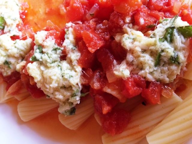Zwiebel und Knoblauchzehen klein schneiden und in Olivenöl andünsten, Tomaten (frisch oder aus der Dose) hinzugeben, würzen und ca. 10 Min. köcheln lassen.