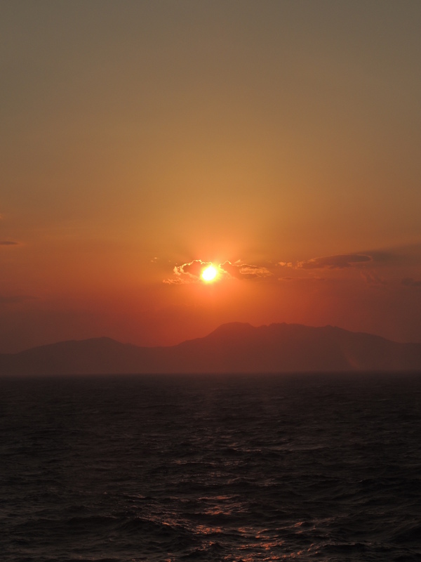 Verabschiedet hat uns Mykonos mit einem wunderschönen Sonnenuntergang.