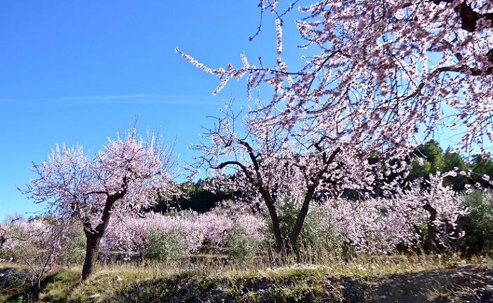 Wir waren gestern mit unseren englischen Nachbarn im Jalón-Tal (organisierte Tagestour mit einem Busunternehmen der südlichen CB) und ich habe natürlich auch die dortige Mandelblüte bewundert.