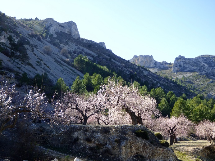 Wir waren gestern mit unseren englischen Nachbarn im Jalón-Tal (organisierte Tagestour mit einem Busunternehmen der südlichen CB) und ich habe natürlich auch die dortige Mandelblüte bewundert.