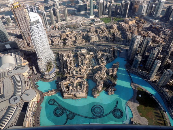 Am Fuße des Burj Khalifa befindet sich die Dubai Fontain, die größte Wasserfontäne, die jemals gebaut wurde. Hier kann man täglich ab 18.00 Uhr im 30-Minuten-Takt beleuchtete mit Musik untermalte Wasserspiele betrachten. Sowohl Choreographie wie auch Musikuntermalung wechseln mit jeder Vorführung.