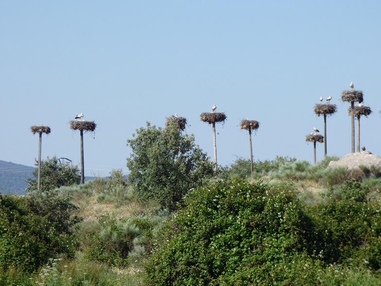 Stehen die Storchennester einfach so mitten in der Landschaft?