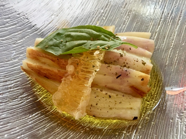 Die Speisekarte ist relativ übersichtlich und zu den ständigen "Tapes" gibt es einen handgeschriebenen Zettel mit täglich wechselnden Gerichten. Den haben wir uns kurzfristig aushändigen lassen, weil wir der flotten Aufzählung und den teils kreativen Namen der Gerichte auf die Schnelle nicht folgen konnten. In der Annahme, wir hätten jeweils ein Hauptgericht und zwei Vorspeisen zum Teilen ausgewählt, wurden wir beim Servieren dann eines besseren belehrt. Alle Gerichte kommen in der bestellten Reihenfolge in die Mitte des Tisches und werden geteilt - wie bei Muttern halt.