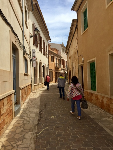 Die Stadt Santanyí ist eine selbständige Gemeinde, befindet sich im äußersten Südosten Mallorcas und wurde 1236 erstmals erwähnt. Geparkt haben wir am Ortsrand und sind von dort an einem Kreuz aus "pedres de Santanyí", den für die Gegend des Migjorns typischen feinkörnigen, kompakten Kalksteinen und dem alten Waschhaus in die Altstadt spaziert.