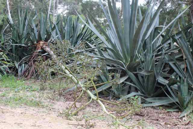 Der Hauptweg mit den Pinienbaeumen erinnert entfernt an Savannah Hier ein Ausblick auf den Park von einer gezaehmten Wanderdüne. Tote bzw. sterbende Agaven sieht man überall. Der Spielplatz hat die besten Jahre seit Jahrzehnten hinter sich. Wasser kommt hier auch nicht mehr. Hier wird fuer die Aufforstung gesorgt. Wobei es sicherlich einige Zeit braucht, bis die kahlen Stellen gefüllt sind. Einen brauchbaren Weihnachtsbaum haben wir gefunden. Weiss jemand, wie dieser Strauch heisst? Der Duft erinnert an Honig.