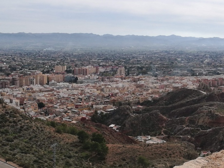 Rundumblicke von der Burg auf Lorca. Die Autobahn geht unter der Burg durch einen Tunnel.