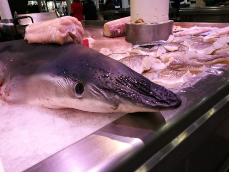 Wie alle Touries haben wir nur im Markt fotografiert. Dabei hätte ich doch so gern von dem frischen Fisch einen gekauft. Sägefisch oder Hai habe ich noch nie gegessen. Selbst die Lachsgräte hätte doch für eine leckere Fischsuppe gereicht.