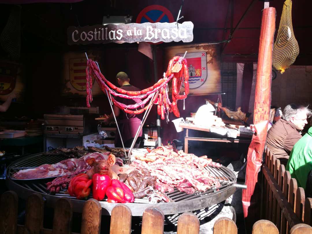 Wir waren am Samstag auf dem Markt. Ein kalter Wind zog durch alle Straßen, obwohl die Sonne schien. Das hat uns noch zusätzlich (Preise der Grillangebote sehr unspanisch) davon abgehalten in einer der luftigen Zelte eine Grillplatte zu essen.