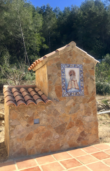 Und auch auf diesem Weg begegnet man dem Jacobsweg. Wir haben ihn nun wirklick überall in Spanien gesehen; es gibt keinen Landstrich, wo wir nicht die gelbe Muschel auf blauem Grund fanden.