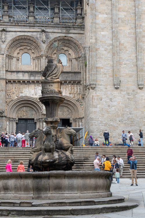 Wir sind in Santiago de Compostela an der Kathedrale angekommen und nach rund 30 km ganz schön platt. Ein Tag mit viel Wasser, vor allem von oben...