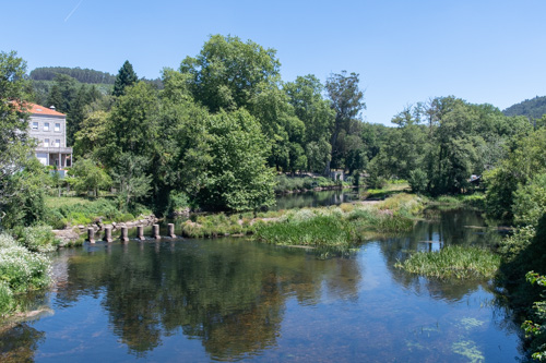 Jetzt sind wir in Padrón, einem Dorf mit ungeheurer Bedeutung - nicht für die Pilger, naja, vielleicht für die auch, sondern für die Gourmets unter uns: die berühmten „Pimientos de Patrón“ kommen von hier, 1,3 Millionen Kilogramm pro Jahr. Das sind die kleinen grünen Paprikaschoten, die vor allem in Spanien gegrillt oder auf der Plancha gebraten und mit Meersalz bestreut serviert werden. Völlig klar, dass die Unmengen, die verbraucht werden, unmöglich alle von hier stammen, deshalb gaaanz wichtig, die Originalen vor Ort zu genießen. Was wir heute zu Mittag auch ausgiebig getan haben, dazu reichlich vom galizischen Oktopus und dem herrlichen leichten frischen Weißen aus der Steintasse.