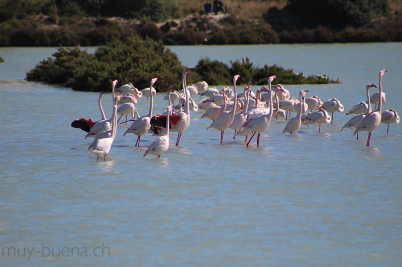 Ein gemütlicher Spaziergang am See, mit beobachtungsposten, damit die Vögel nicht gestört werden. Ich hab da wohl ein Plätzchen gefunden, welches noch knapp an der Tolergrenze der Flamingos war, siehe die gestreckten Hälse ... aber sie liessen mich gewähren ...