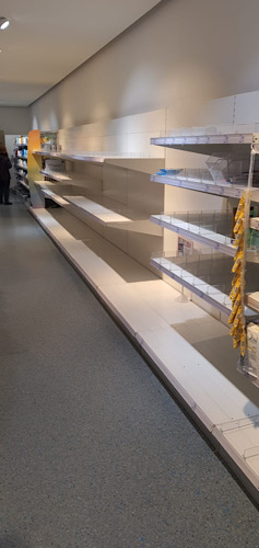 Die letzten 2 Male die ich einkaufen war (letzten Samstag und Montag) waren die Regale leer.
