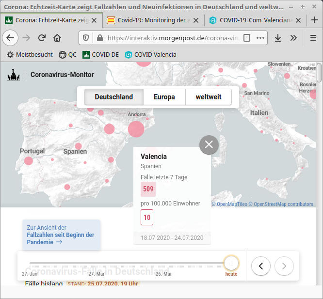 Die Angaben auf der Website COVID-19 C. Valenciana: Monitoratge de la situació sind leider alle auf Valenciano, aber trotzdem leicht verständlich, wenn man weiß, was folgende Wörter/Begriffe bedeuten: