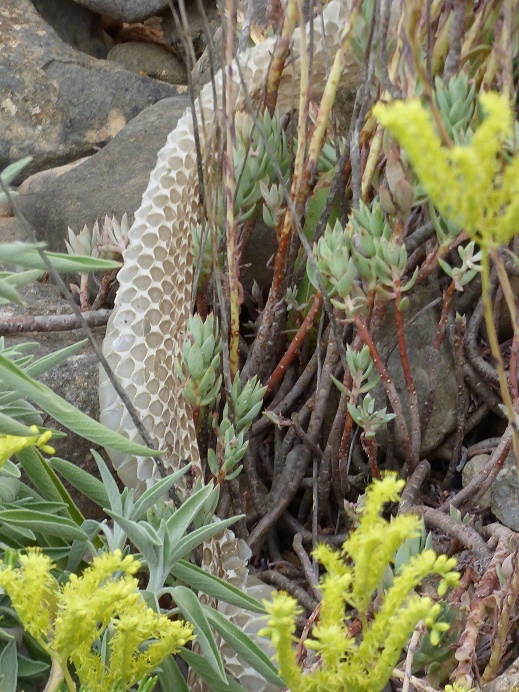 Vorsichtig sondierte ich die Lage, tatsächlich - auch zwischen dem Rosmarinstrauch, der direkt daneben wächst, schimmerte es verdächtig. Ich griff nicht in den Salbei