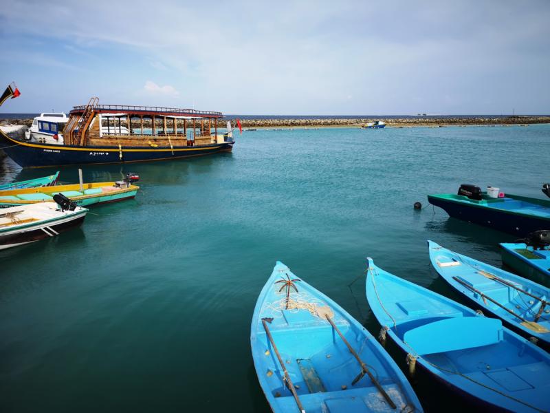 Als im November die Comunidad Valenciana den grünen Bereich der 7-Tage-Inzidenz verließ und Deutschland eine coronabedingte Reisewarnung für Spanien aussprach, weil auch da die Zahlen wieder in die Höhe schnellten, und nicht zuletzt wegen des usseligen (umgangsprachlich: nasskalt) Wetters, entschlossen wir uns, unsere schon im Sommer gebuchte Reise auf die Malediven, als man noch an das Abflachen der Pandemie glaubte, anzutreten. Wir waren doppelt geimpft und durften unter zusätzlicher Vorlage eines PCR-Tests einreisen. Dieser Test, den wir wegen des geringen Zeitfensters nur am Flughafen machen konnten, zehrte bis Zustellung des Testergebnisses (nachts um drei) an unseren Nerven. Grund: Wir hatten eine Autoreise durch Frankreich hinter uns, hatten danach Kontakt zu unseren ungeimpften Enkeln in Deutschland, und fragten uns, ob wir uns vielleicht doch irgendwo infiziert hatten, ohne Symptome zu zeigen. Wir konnten von unserer Buchung wegen Covid-19 noch bis zum letzten Tag zurücktreten, obwohl wir keine Pauschalreise gebucht hatten, aber wegen des PCR-Tests und der Abflugzeit am nächsten Tag hätten wir nicht mehr rechtzeitig stornieren können. Im schlimmsten Fall hätten wir den Linienflug verschieben müssen, aber den Preis für drei Wochen Inselaufenthalt hätten wir zahlen müssen. Das Risiko konnten wir eingehen, denn der Aufenthalt auf den local islands ist unvergleichlich günstiger als auf den reinen Hotelinseln, wo den Touristen kulinarisch alles geboten wird, was sie von Zuhause kennen, denn für sie wird fast alles aus der Ferne importiert.