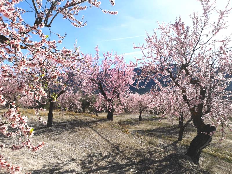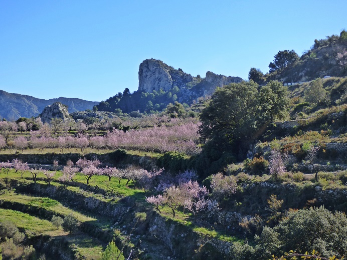 Weiter gings ins Guadelest-Tal. Hier lohnt sich inzwischen eine Mandelblütenfahrt, obwohl es viele leere Bancales gibt (wenn man die Gegend vor einigen Jahren her kennt).