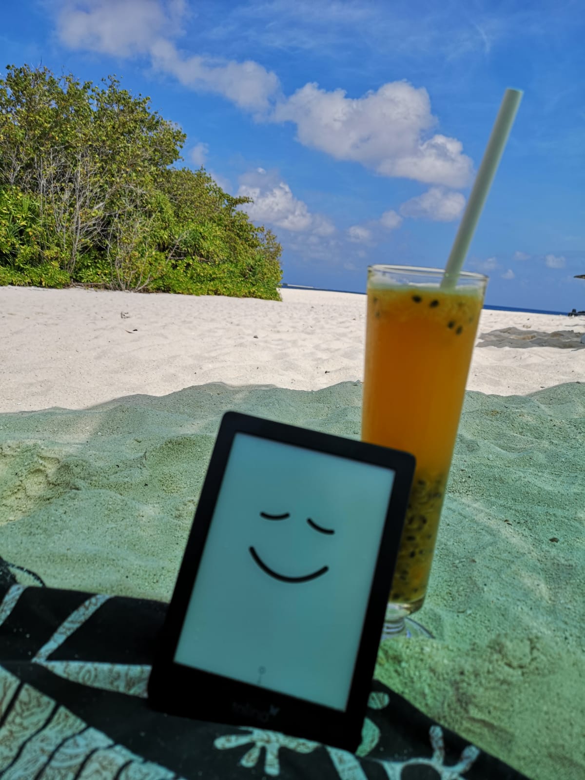 Er ist robust, trotzdem sehr leicht und passt fast in jede Mantel- oder Jackentasche. Er ist mein ständiger Begleiter, mit dem ich mir auch die langweiligste Wartezeit (wie auf Flughäfen oder beim Arzt) verkürze. Das Einzige, was ich bemängele, ist der Ein-/Ausschalter. Den fand ich beim Kobo einfacher zu bedienen.