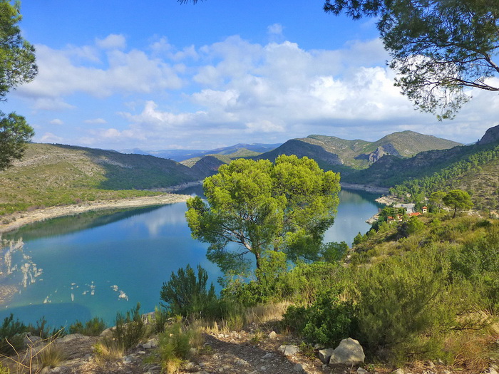 Im Bereich des Stausees verlässt man die Enge des Canons. Hier der Blick zurück zu der Stelle, wo der Turia sich durch den Fels gefressen hat.