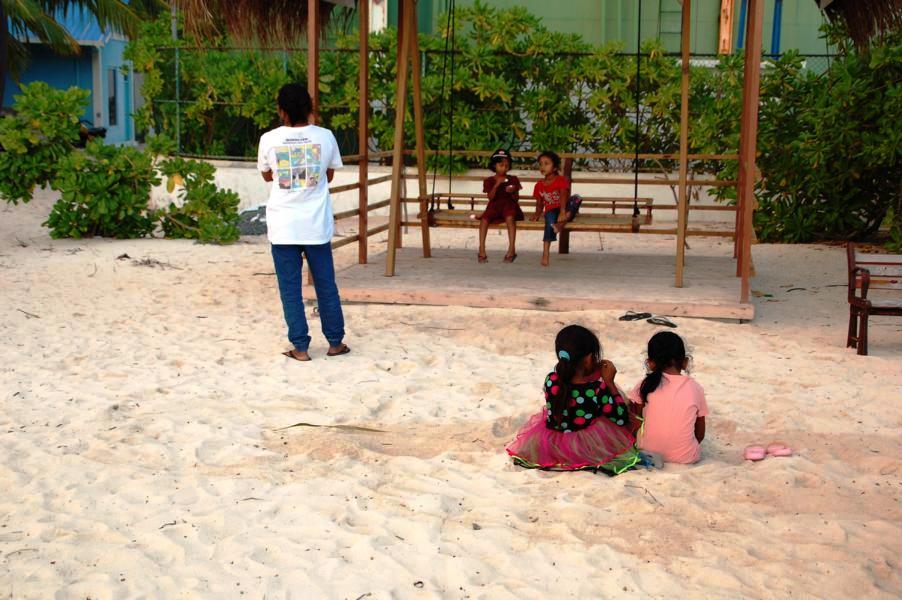 Aber um schnell noch mal auf die Religion zu kommen: Es gibt auf den Einheimischeninseln Strände für Touristen (die sogenannten Bikini Beaches) und local beaches für die Einheimischen, die dort, wenn überhaupt, bekleidet ins Wasser gehen. Der Strand ist eher was für die Kinder: @ Frambuesa