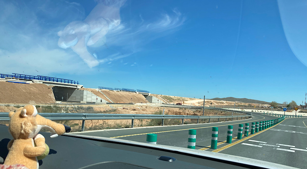 Die Bautätigkeiten an der A-33 sind schon enorm und wir wundern uns immer wieder, dass in Spanien der Bau von neuen Straßen und Autobahnen scheinbar keinen „grünen“ Gegenwind oder Aufstände der kleinen Feldhamster auf die Bühne ruft ;)