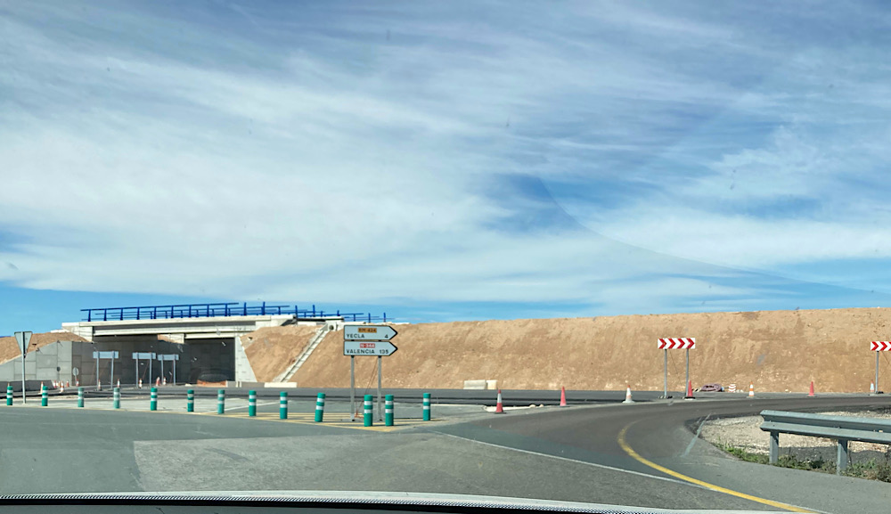 Die Bautätigkeiten an der A-33 sind schon enorm und wir wundern uns immer wieder, dass in Spanien der Bau von neuen Straßen und Autobahnen scheinbar keinen „grünen“ Gegenwind oder Aufstände der kleinen Feldhamster auf die Bühne ruft